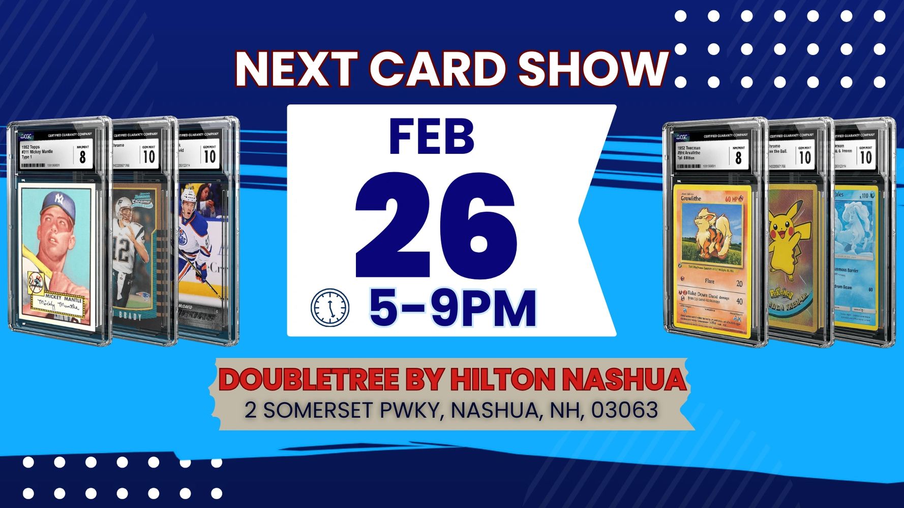 Attend our FREE Thursday Night Card Shows located in Southern New Hampshire, on select dates from 5-9PM!