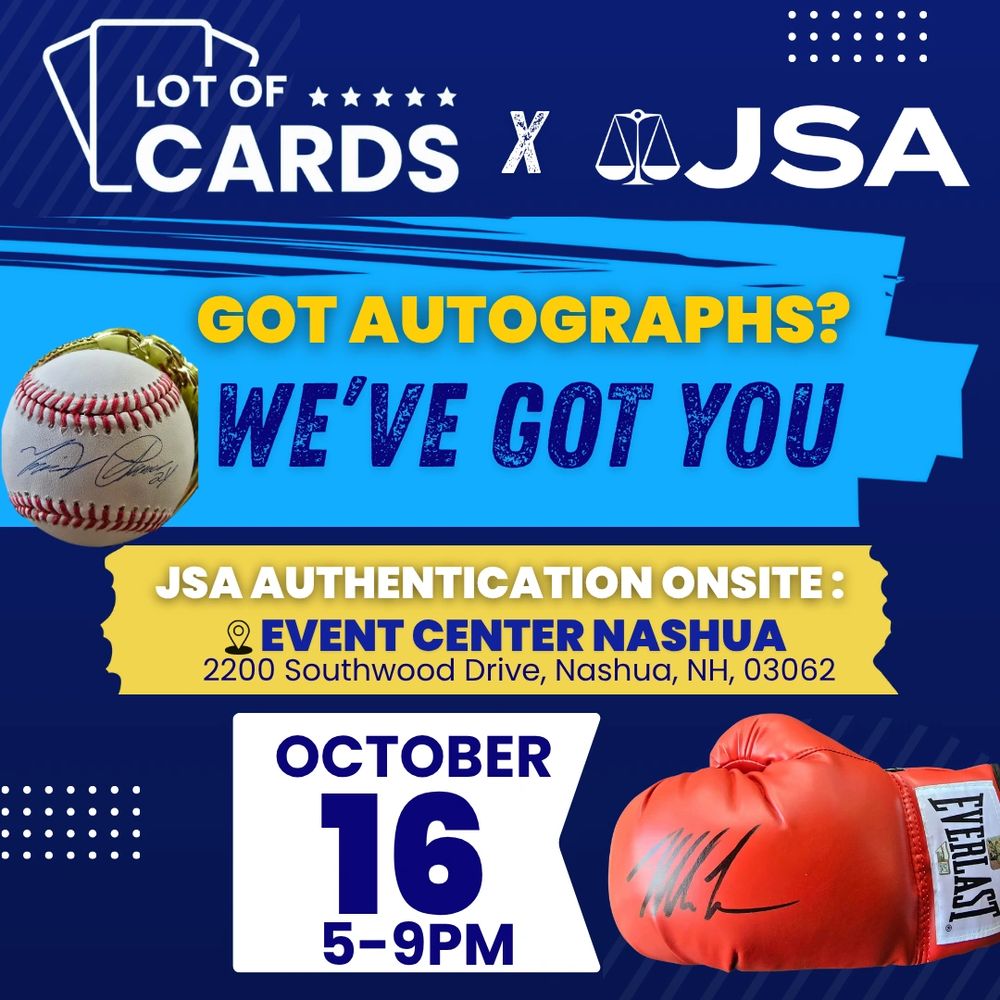 Attend our FREE Thursday Night Card Shows in Nashua New Hampshire, on select dates from 5-9PM! Located at the Event Center Nashua, right on the Massachusetts border, our week night events are worth the trip.